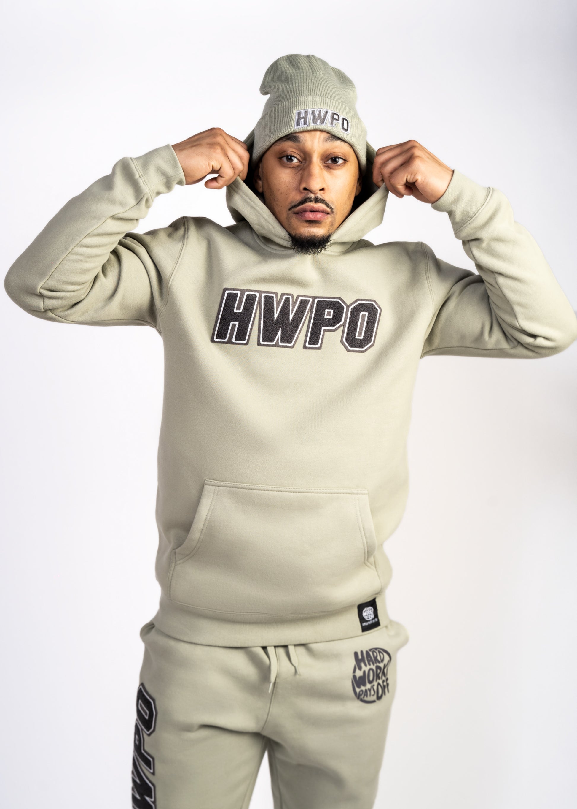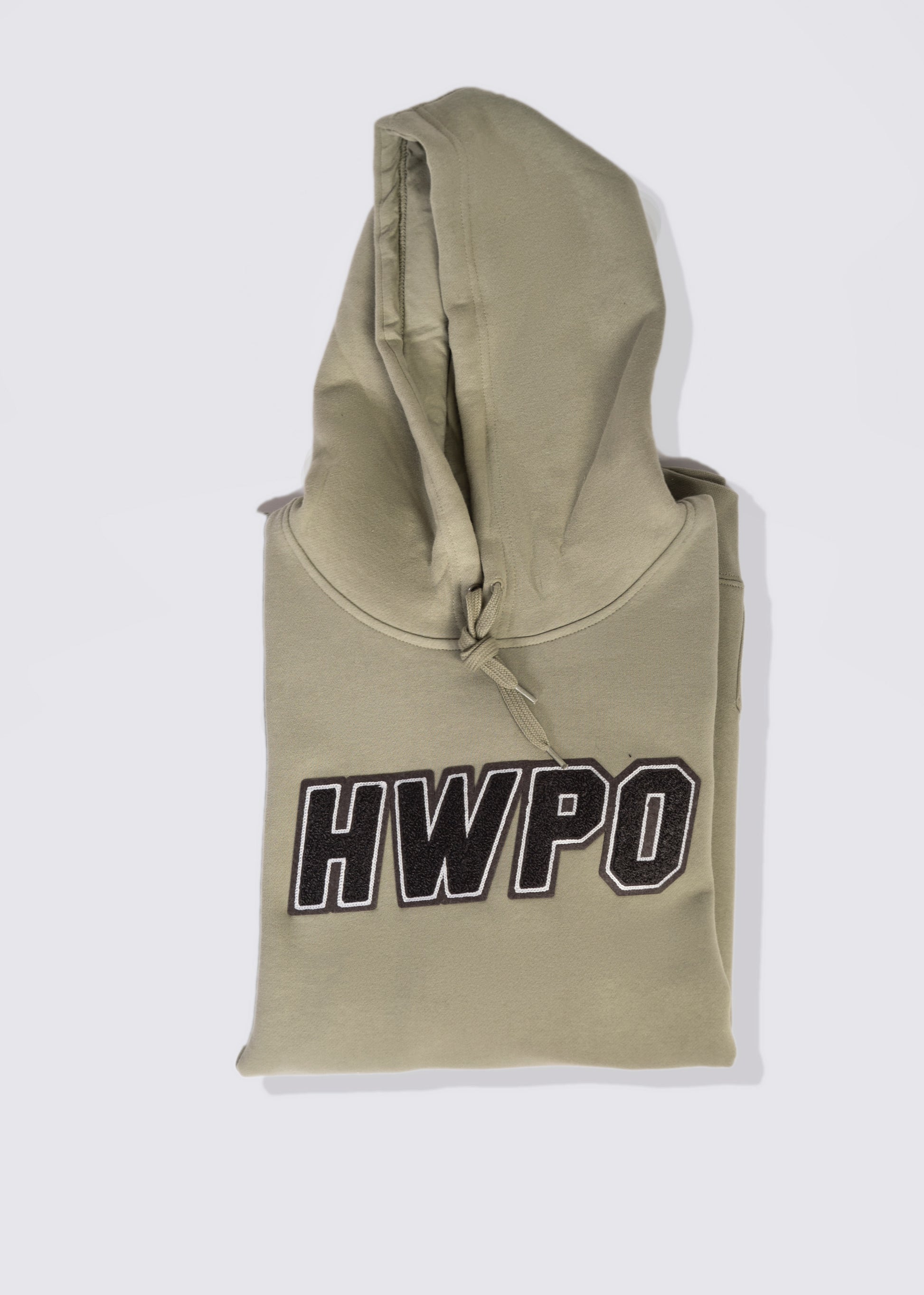 Hoodie with HWPO Letters in Chenille patch on the check.