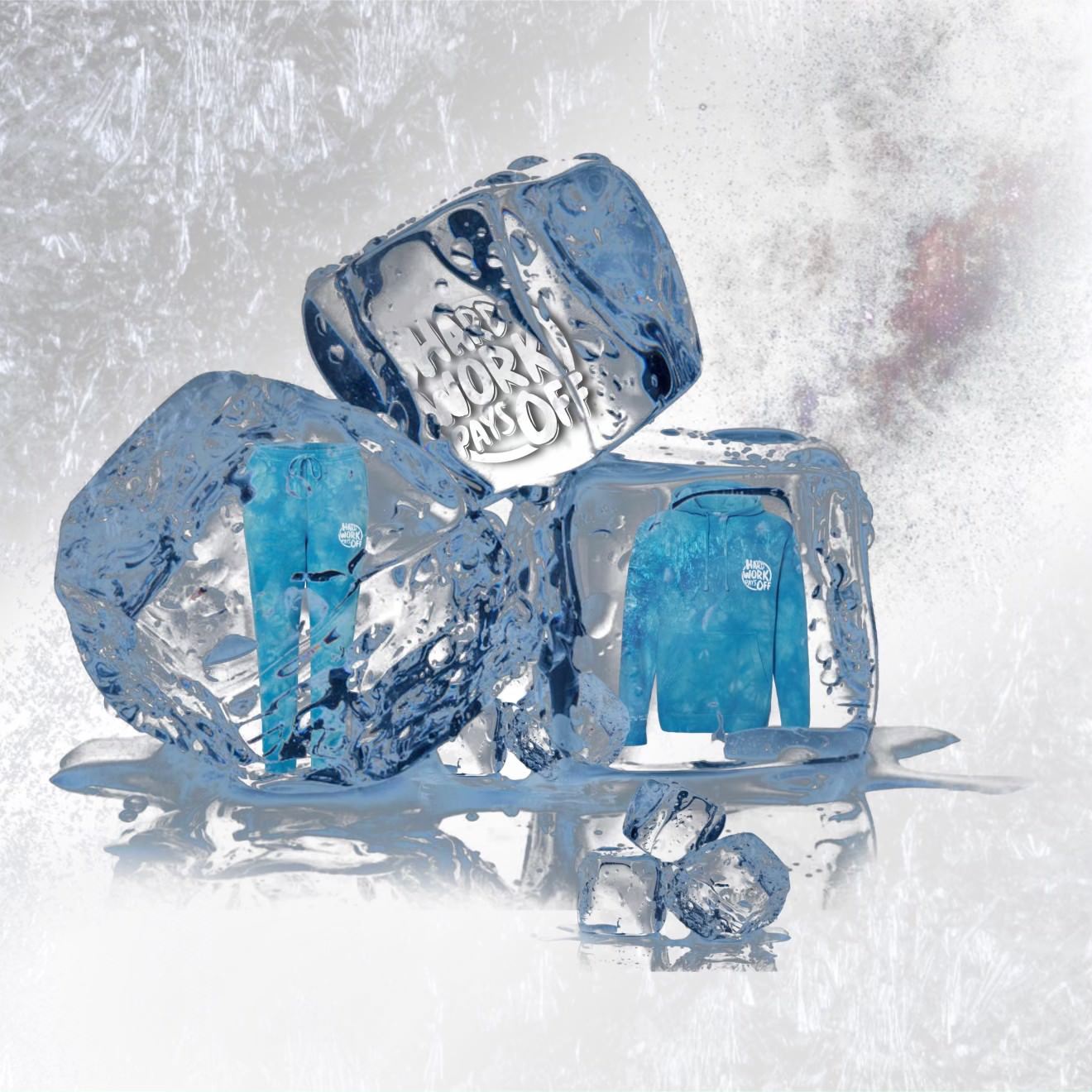 Winter Dreams Hoodie featuring an embroidered Hard Work Pays Off logo in white. Arctic Glacier Blue Tie-dye wash with a front pocket made with the softest premium fabric.